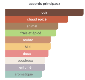 En cœur, il dévoile une richesse aromatique et florale avec le poivre rouge, le miel, l’œillet, la pivoine, le magnolia, la sauge et l’iris, apportant une profondeur à la fois douce et épicée. Le fond se distingue par une signature puissante et chaleureuse, mêlant cuir, tabac, oud, patchouli, bois de cachemire, benjoin et caramel, créant un sillage intense, gourmand et sophistiqué.